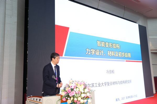 冷劲松教授作了题为“智能变形结构:力学设计、材料及初步应用”的开幕报告,讲解了我校在智能材料领域的研究重点与研究方向,指明了其在复杂工作条件下的应用,体现出我校面向国家重大战略需求,打造国之重器的特色。冷劲松教授研究的智能变形材料已成功用于我国首个火星探测器天问一号,也是软体机器人大变形所需的关键材料之一。