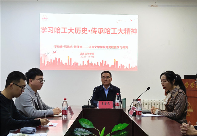 11月5日晚,语言文学学院在博学楼315会议室开展“学习哈工大历史·传承哈工大精神”校史学习活动。校区党委副书记、纪委书记王建文主讲,语言文学学院党总支副书记王莹主持,辅导员张凯、2021级全体新生参加了活动。