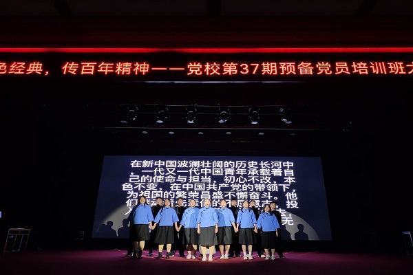 为庆祝中国共产党成立100周年,传承和发扬党的光荣传统,11月6日晚,党校第37期预备党员培训班举办“颂红色经典,传百年精神”大班活动。
