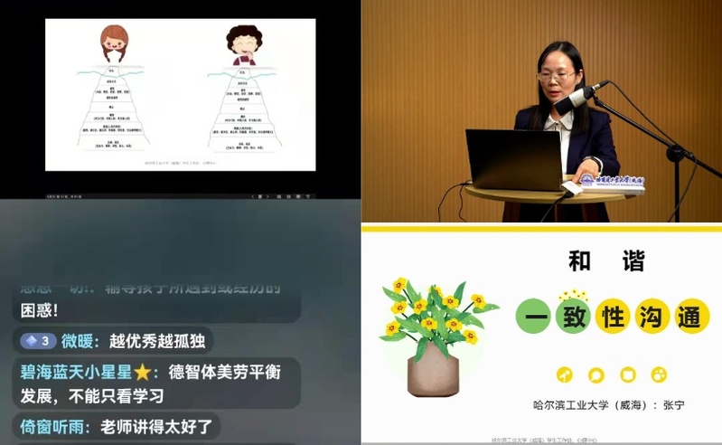 家庭教育是对孩子身心健康成长不可缺少的一种教育,家庭教育有学校教育、社会教育不可代替的作用。即使在大学期间,家庭支持仍然是学生成长的重要支撑力量,而一致性沟通是建立良好亲子关系的重要桥梁。为了帮助更多的家长了解大学生的特点,与孩子建立良好的沟通关系,校区学生工作处分别于11月5日和11月12日晚,举办了线上家长课堂。本次讲座由校区心理中心专职教师、国家二级心理咨询师张宁主讲,主题为《和谐,从一致性沟通开始》,近千名家长参与听讲。