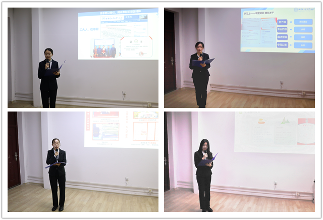 会上进行了先进班集体及标兵、优秀学生及标兵、优秀学生干部及标兵的评比,候选班级代表及候选人分别上台进行展示。2005101班在班长王杨的带领下,班级同学积极向党组织靠拢,不仅学习成绩优异,还积极参与实践,班级还举办了丰富多彩的团日活动,以线上线下相结合的方式提升班级的凝聚力。19级汉语言文学专业李洋立志传承哈工大精神,不仅学习优异获得了国家奖学金,还将其捐献给校区助力校园文化建设,她积极参与创新创业活动,多次在“校长杯”和“挑战杯”的创新创业大赛中获得一等奖。19级汉语言文学专业冯春然同学立大志、担大任、明大德,学习成绩名列前茅,并且发扬创新精神,开发国内首个AI原创音乐社区,她对待学生工作也认真负责,受到老师与同学们的赞扬。19级英语专业学生干部郭淞汝作为学院学生会主席,恪尽职守,成功组织了多项院内活动,践行了为同学、学院负责的原则,受到同学跟老师的一致好评。