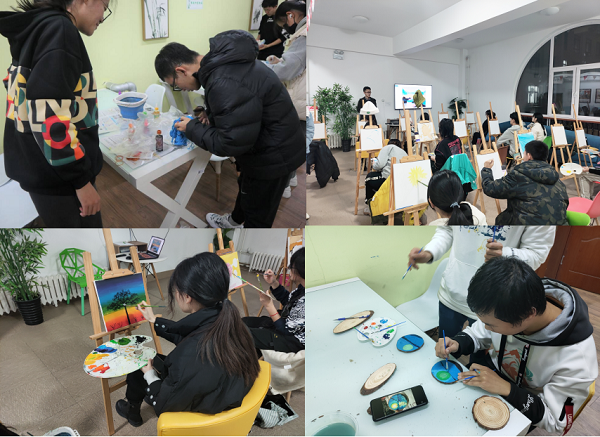 虽然大部分人是第一次做扎染、绘制油画,但是在工作人员的耐心指导和同学们互相帮助下,大家投身其中,发挥想象力和创造力,不仅学到了许多扎染和绘画的知识,还收获了自己独特的作品,真正享受到了艺术活动的乐趣,提高了自己的艺术修养。