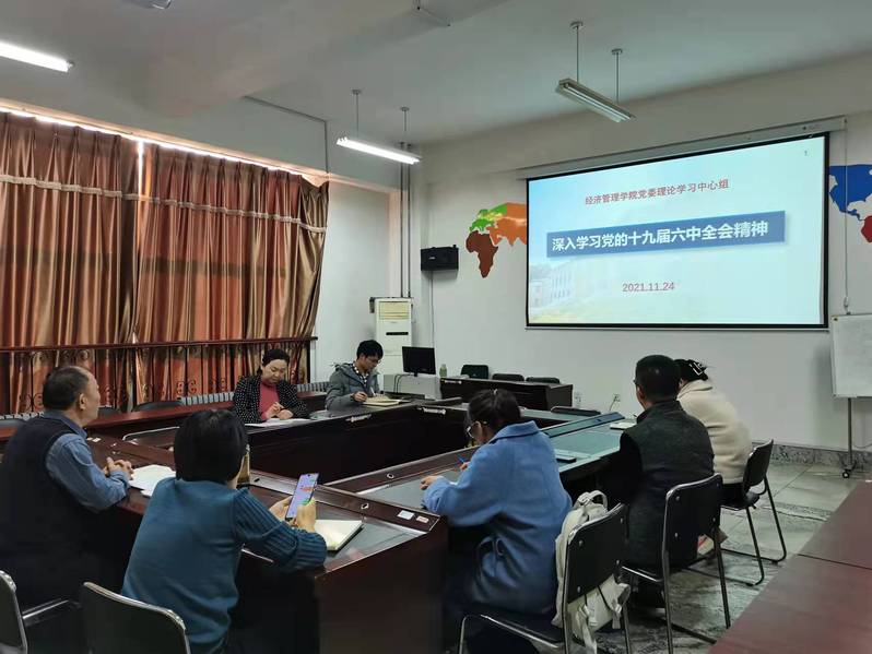 11月24日下午,经济管理学院于研究院南508召开党委理论学习中心组扩大会议,集体学习党的十九届六中全会精神。学院党委书记胡永河主持会议,党委理论学习中心组成员和各党支部书记参加会议。