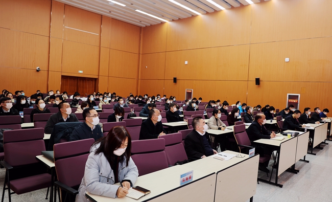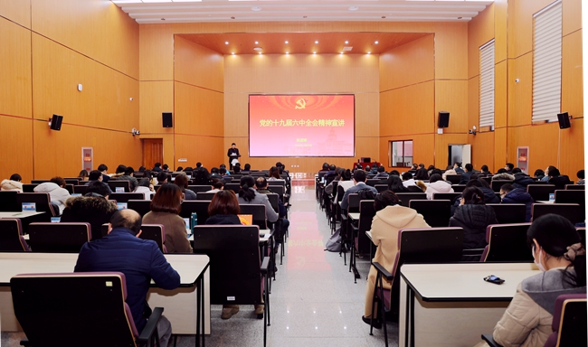为深入学习宣传贯彻党的十九届六中全会精神,教育引导校区党员干部和师生员工深刻学习领会习近平总书记重要讲话和全会精神的丰富内涵与核心要义,推进党史学习教育深化拓展,12月20日下午,党的十九届六中全会精神威海校区宣讲团成立暨校区首场宣讲报告会在图书馆报告厅举行,校区党委书记张淑娣作宣讲报告。校区机关党群部门全体人员,各基层党委书记、副书记、组织员、辅导员参加会议,报告会由校区党委副书记王彦岩主持。