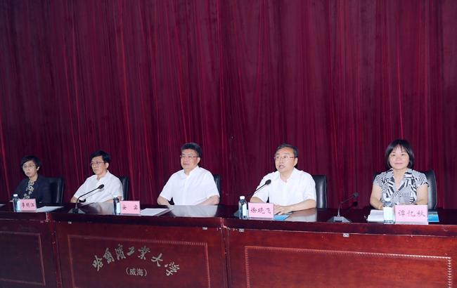 6月25日下午,哈工大(威海)在功学楼202召开干部大会,宣布哈工大党委关于谭忆秋同志任哈工大(威海)校长的决定。哈工大党委常务副书记安实出席会议并讲话,哈工大副校长、威海校区原校长徐晓飞同志和谭忆秋同志分别作表态发言。哈工大党委组织部部长兼机关党委常务副书记李明江宣读任免决定。威海校区党委书记张淑娣主持会议。