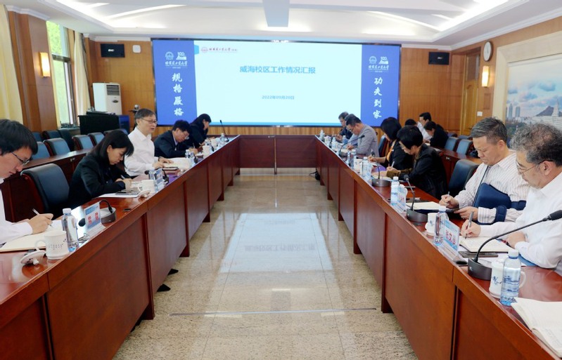 威海校区校长谭忆秋从人才培养、师资队伍建设、科学研究、校企合作与成果转化、内部治理、中长期发展规划等方面作了汇报,同时分析了校区发展中存在的问题,提出了下一步发展思路与举措。威海校区党委书记张淑娣主持汇报会。