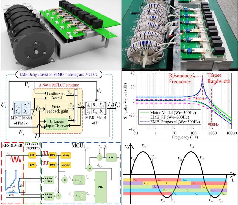 随着电力硬件在环技术的进步,电机模拟器(EME)作为新能源汽车电驱动系统开发测试的重要技术,已经成为电驱动领域的关注焦点。然而,基于传统建模方法和控制结构的电机模拟器无法确保高转速下的鲁棒动态精度。该工作提出了一种基于多输入多输出建模和闭环电流控制结构的电机模拟器设计方法,解决了电机模拟器高速动态频域目标和精度问题。同时,该工作提供了一种旋转变压器数字解调方法,能够显著降低旋转变压器解调带来的角度延迟,并减少了数字解调的量化误差。