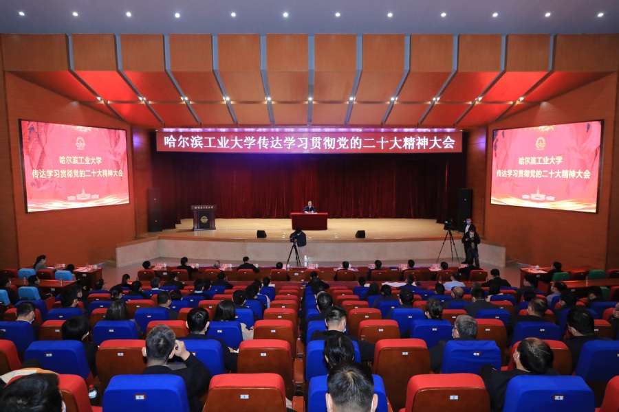 韩杰才在主持大会时指出,全校上下要将党的二十大精神学习宣传贯彻落实作为当前和今后一段时期最重要的政治任务,深刻领会“两个确立”的决定性意义,增强“四个意识”、坚定“四个自信”、做到“两个维护”,坚定不移在思想上政治上行动上同以习近平同志为核心的党中央保持高度一致,自信自强、守正创新,踔厉奋发、勇毅前行,奋力走好中国特色、世界一流、哈工大规格的新百年卓越之路,为全面建设社会主义现代化国家、全面推进中华民族伟大复兴作出新的更大贡献。