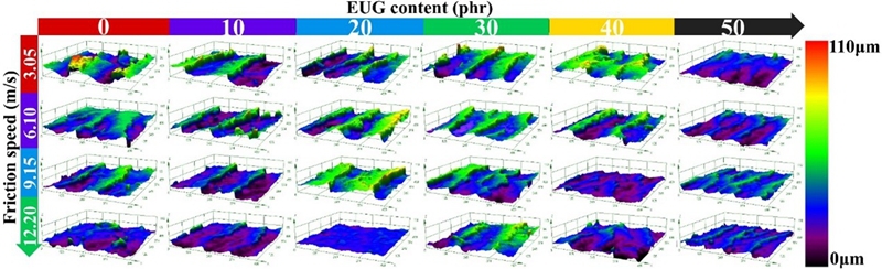 近日,海洋工程学院橡胶复材所在摩擦磨损领域权威Top期刊《Wear》和《Tribology International》发表多篇文章,揭示了苛刻服役条件下航空轮胎胎面材料的高速摩擦磨损及粘滑机理。其中,题为《Thermo-mechanical-abrasive coupling analysis of solid rubber tire under high-speed rolling》的研究论文被《Wear》录用,毕业研究生陈达为文章第一作者,吴健副教授和粟本龙助理研究员为文章通讯作者。题为《High-speed tribological properties of Eucommia ulmoides gum/natural rubber blends: experimental and molecular dynamics simulation study》的研究论文发表在《Tribology International》,研究生滕飞和吴健为文章共同第一作者,粟本龙助理研究员为文章通讯作者。