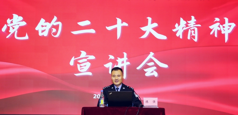 11月20日下午,党的二十大代表、威海市公安局反恐怖支队支队长陈强来到校区大学生活动中心,与广大青年学子分享交流参加党的二十大的收获与体会,宣讲党的二十大精神。宣讲会前,校区党委书记张淑娣与陈强亲切座谈,校区党委副书记、副校长赵国亮与党委宣传部、团委相关负责人参加了宣讲会。