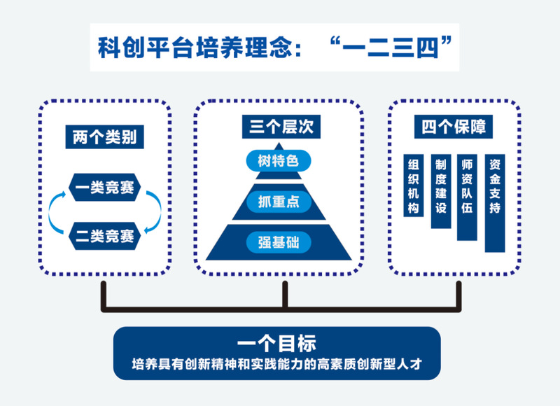 党的二十大报告中明确指出,要全面提高人才自主培养质量,着力造就拔尖创新人才。信息科学与工程学院一贯高度重视学生创新精神和工程实践能力培养,始终将学生科技创新与实践教学深度融合,鼓励高层次专业教师指导,开展本硕博贯通式创新培养,探索形成了“一二三四”创新人才培养理念,建成了校区最大的电子控制类创新平台——大学生电子信息科创平台,支持培育了一大批学生科技创新团队,仅2022年学院就获得了包括第八届中国国际“互联网+”大学生创新创业大赛银奖等国家级奖项59项、省部级以上奖项105项,为落实贺信精神、培养不断追求卓越的拔尖创新人才提供了有力保障。
