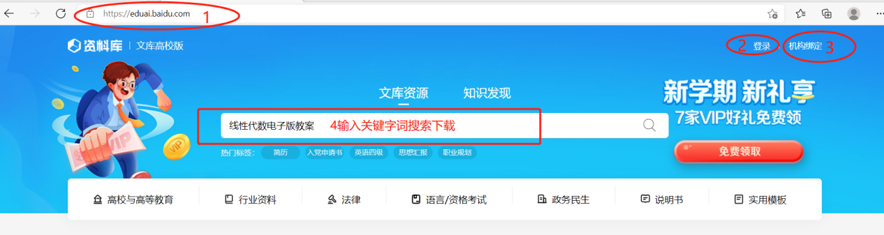 (2)点击右上角登录个人百度账号后自主搜索下载相关文档。