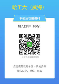 本次活动采取“互联网+”线上模式,利用微信“运动步数”小程序功能进行健步走计步统计工作。请参加本次活动的教职工下载关注“运动步数”公众号,加入“哈工大(威海)”,编辑姓名、手机号、部门即可参加校区工会创建的“百日健步走”竞赛活动(以往参加过百日健步走活动的老师扫码参与即可)。