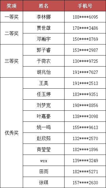 获奖名单