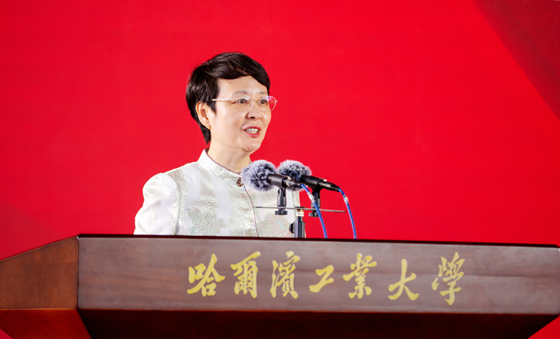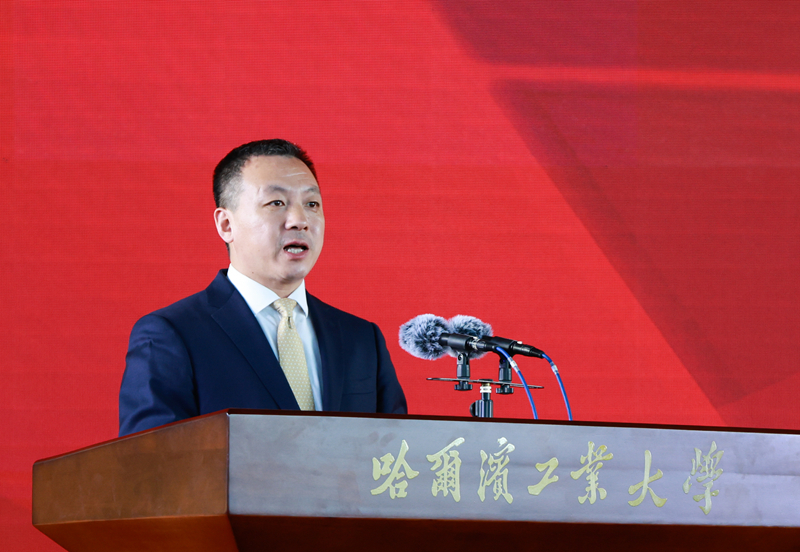 校友宋森华满怀深情回顾了自己的求学时光,并代表广大校友向母校送上真情祝福。他讲到,母校给予广大学子的不仅是书本上的专业知识,更是老师们身上“规格严格,功夫到家”的校训精神,融入血脉的家国情怀和敢闯敢创的非凡魄力。他表示,校友与母校是牢不可破的“情感共同体”,是同向同行的“命运共同体”。面向未来,广大校友将弘扬校训传统,为国家创品牌,为母校添光彩,与母校开展全方位、多样化合作,共同书写以创新驱动引领强国复兴的哈工大人新答卷。
