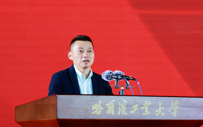 校友宋森华满怀深情回顾了自己的求学时光,并代表广大校友向母校送上真情祝福。他讲到,母校给予广大学子的不仅是书本上的专业知识,更是老师们身上“规格严格,功夫到家”的校训精神,融入血脉的家国情怀和敢闯敢创的非凡魄力。他表示,校友与母校是牢不可破的“情感共同体”,是同向同行的“命运共同体”。面向未来,广大校友将弘扬校训传统,为国家创品牌,为母校添光彩,与母校开展全方位、多样化合作,共同书写以创新驱动引领强国复兴的哈工大人新答卷。