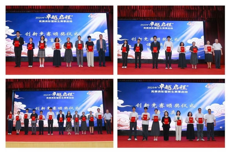 表彰会为在体育类、韩语、英语赛事中斩获国家级、省级奖项的学子与指导教师隆重授奖,众多师生在不同赛事中展现出众实力,现场掌声不断。