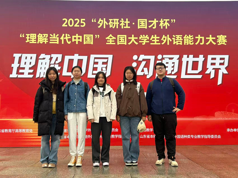 近日,2025“外研社・国才杯” “理解当代中国”全国大学生外语能力大赛山东省省赛圆满落幕。校区学子凭借扎实的英语功底、敏锐的思辨能力与出色的综合素养,在多个赛项中脱颖而出,一举收获金奖4项,银奖5项,铜奖4项,优胜奖1项的好成绩,彰显校区外语教学与人才培养的卓越成效。