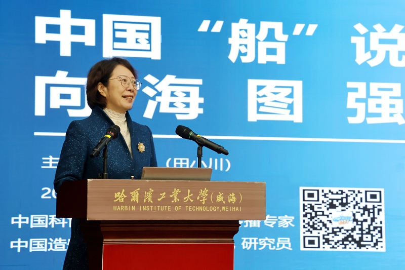 中国舰船研究院研究员郭锐,威海市科协副主席张美丽,环翠区科协主席贺俊彦,环翠区科协兼职副主席、山东云创教育科技有限公总经理荣妍姝,校区科技发展处、信息学院等单位负责人和近300名师生参加了报告会。
