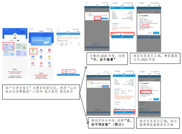 ③若属于2025年是21周岁及以下续保大学生(2004年1月1日之后出生)的,确认参保信息正确后,费款所属是否为2026年度,完成缴费即可。