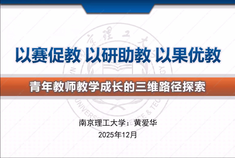 黄爱华院长以“以赛促教、以研助教、以果优教——青年教师教学成长的三维路径探索”为题,系统阐述了教学竞赛对教师专业发展的促进作用,详细解析了全国青年教师教学竞赛与高校教学创新大赛的评审导向与备赛要点,并通过具体案例,深入剖析了课程思政元素与信息技术如何有效融入教学设计并提升竞赛表现。在教改课题研究方面,她强调必须坚持问题导向,明确研究目标与逻辑思路,设计具有创新性且可操作的改革措施,并科学规划预期成果。针对教学成果的凝练与申报,黄院长指出,教学成果源于对教改课题的持续深化、实践检验与体系化拓展。她以南京理工大学“工程精英”人才培养体系的构建与实践为例,生动分享了如何围绕国家战略需求与学生发展,系统整合改革实践,最终成功申报高层次教学成果奖的经验与路径。