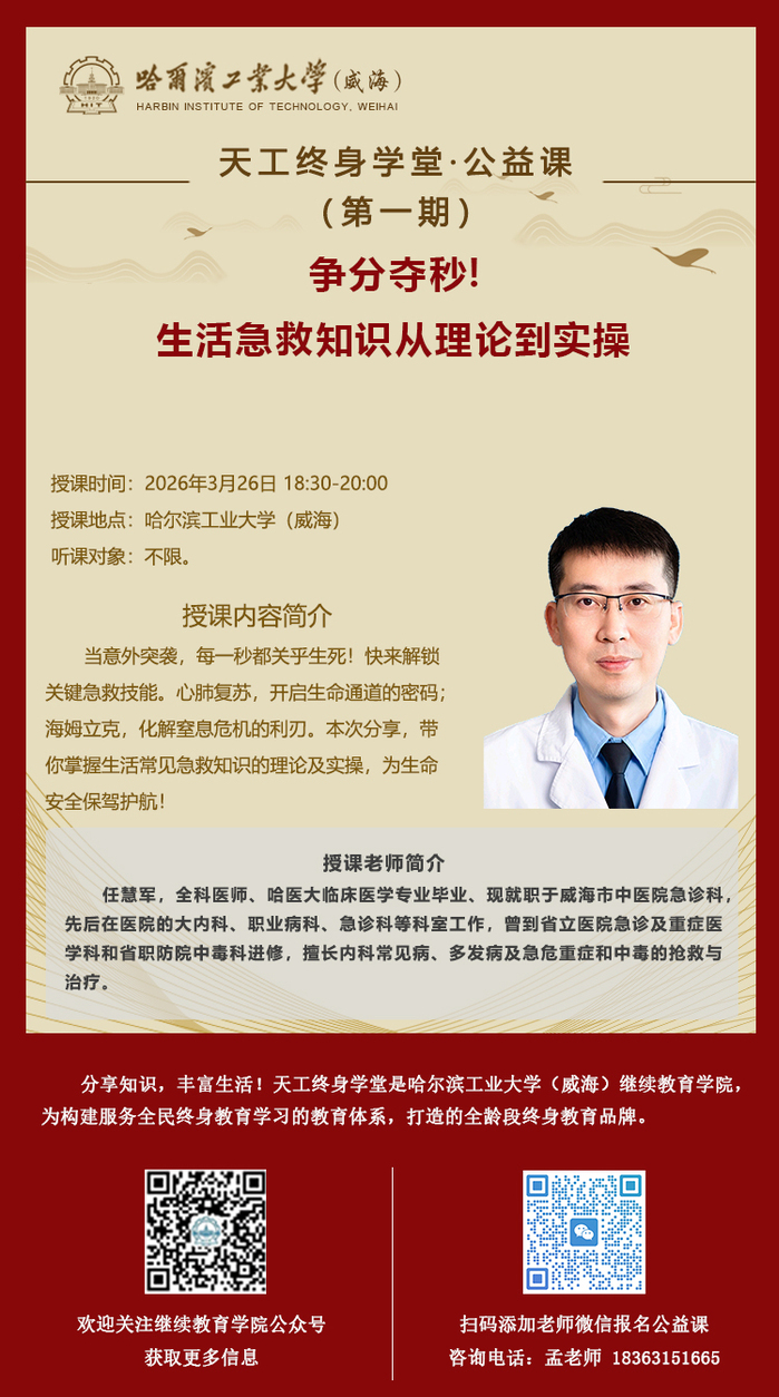 分享知识,丰富生活!天工终身学堂是哈尔滨工业大学(威海)继续教育学院,为构建服务全民终身教育学习的教育体系,打造的全龄段终身教育品牌。