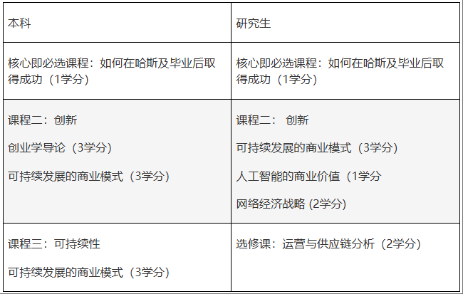 2)哈斯商学院学期学分课程