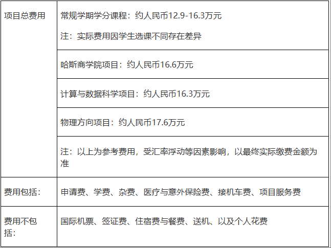 学术要求:GPA 3.0(四分制),修读常规学期学分项目的学生,申请时需已完成本科 1 个学期;修读哈斯商学院项目的学生,申请时必须已完成本科3个学期;修读计算与数据科学项目的学生,申请时已完成本科1个学期;修读物理方向学期学分项目的学生,已完成本科1个学期。